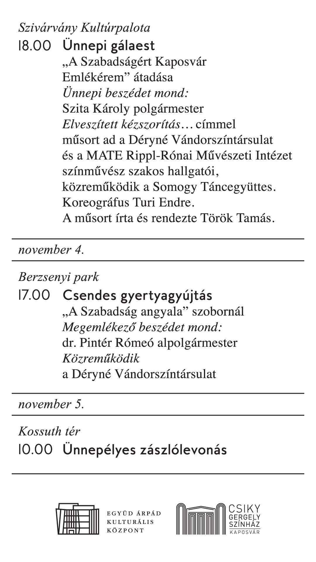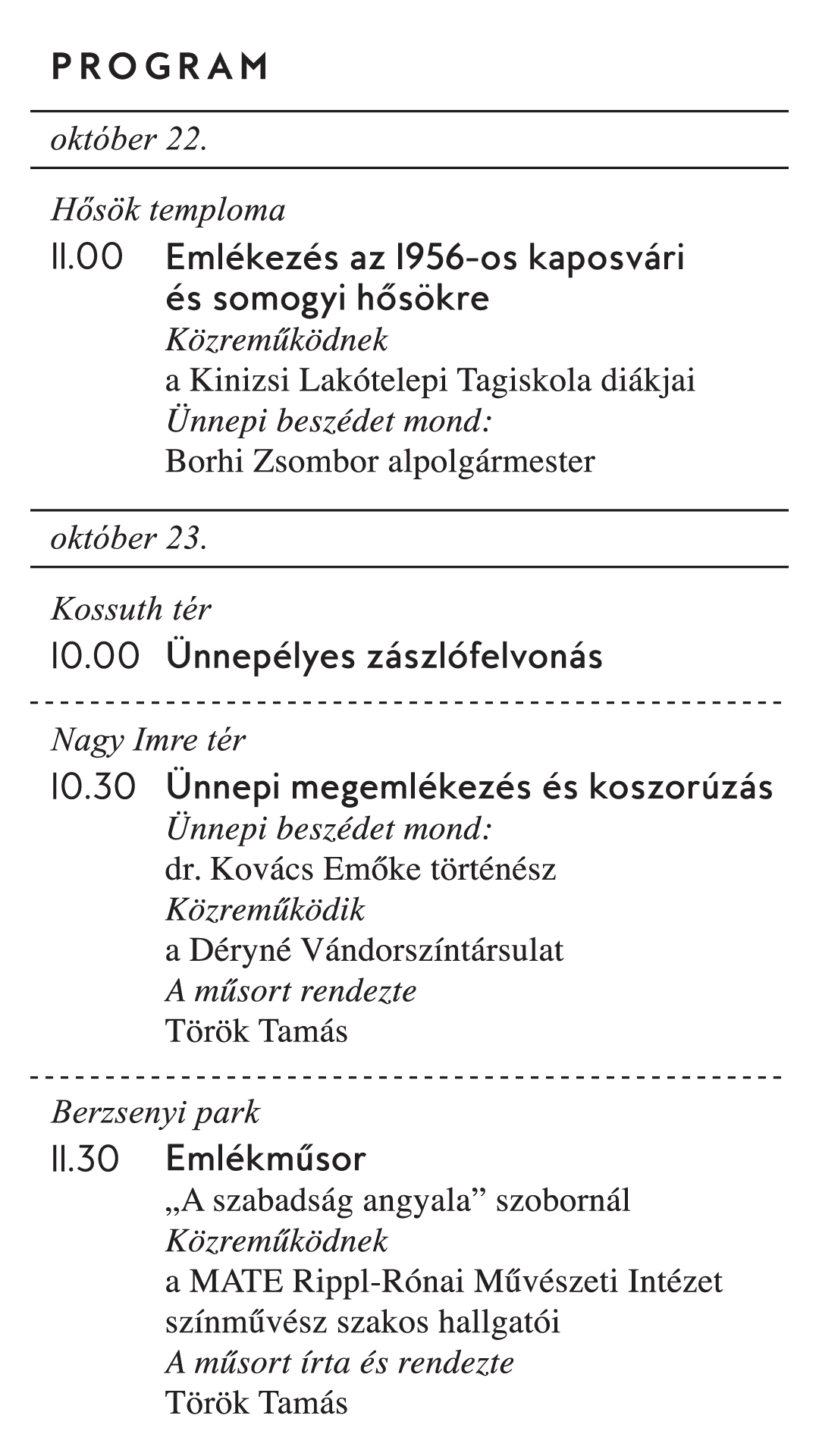 Az 1956-os forradalom és szabadságharc 69. évfordulójának megemlékezései Kaposváron dátum2025. október 22. kategória MegemlékezésKövetkező időpont Megnézem dátum2025 okt 23 időpont All of the day