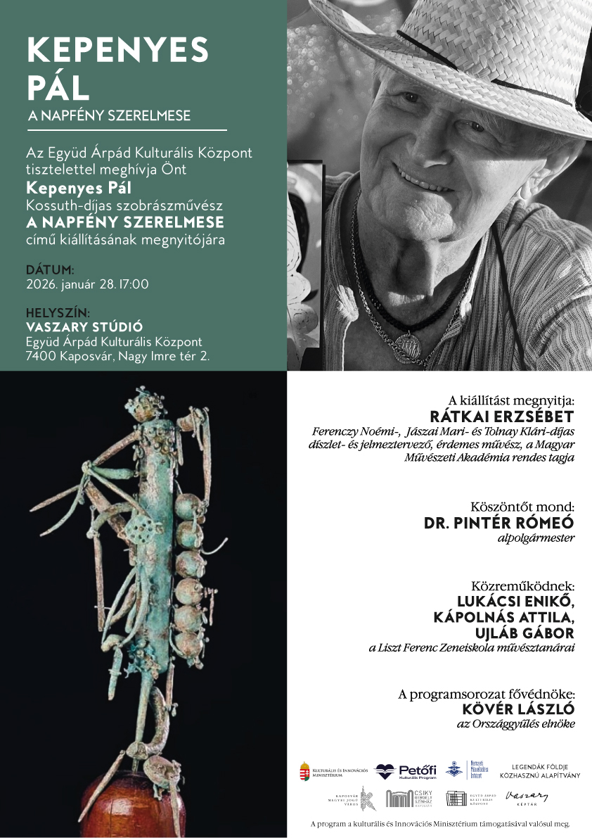 Kaposvárra érkezik Kepenyes Pál Kossuth-díjas, világhírű szobrászművész „A Napfény szerelmese” című vándorkiállítása, amely február 20-ig várja az érdeklődőket a Vaszary Stúdióban.