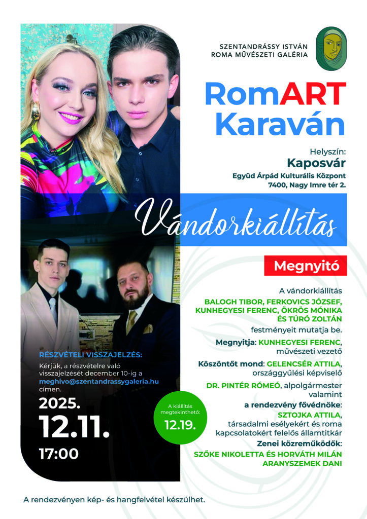 A RomART Karaván vándorkiállítás különlegessége, hogy minden helyszínen két hétig látogatható, így az érdeklődők számára bőséges lehetőséget kínál az alkotások megtekintésére és a roma kultúra mélyebb megismerésére. A szervezők célja, hogy a kiállítás nemcsak művészeti élményt nyújtson, hanem hozzájáruljon a társadalmi párbeszéd erősítéséhez is, hangsúlyozva a művészet közösségformáló és értékteremtő szerepét.